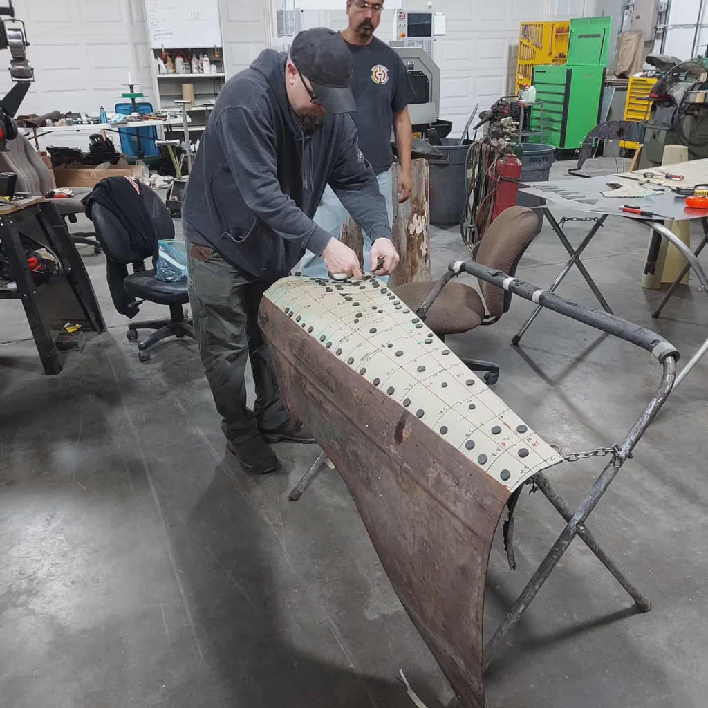 Fender shaping and Repair Class taught by professional Metal Shaper Pat Brubaker you will learn the methods involved in removing damage, large dents, fixing cracks and tears, patterning, shaping new sections of a fender, fitting and welding, straightening and finishing the weld seam. When we make whole panels in the classes we can put a weld seam exactly where we want to. But when building a patch or large section some times we don't have as many choices for where the weld seam should be so we will go over the how and why of patches and large section replacement. As the class runs we will cover: Pattern and layout work Reading the pattern and building a plan Shrinking and stretching (what to do, when and how much) Hand tools Making small tools for details and features Uses of the English wheel Details and body lines Turning and finishing the edges Fitting and welding final straightening and metal finishing